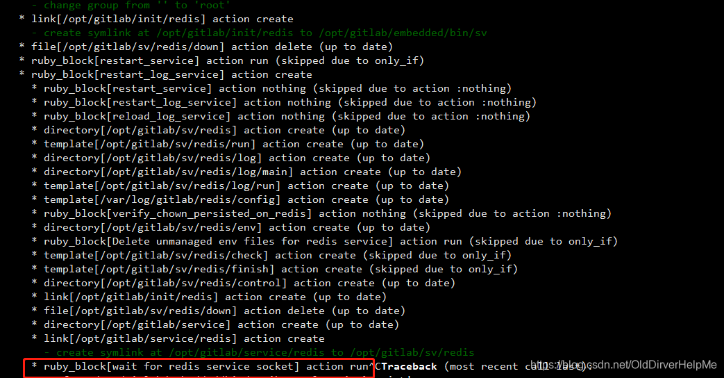 gitlab安装时卡在ruby_block[wait for redis service socket] action run